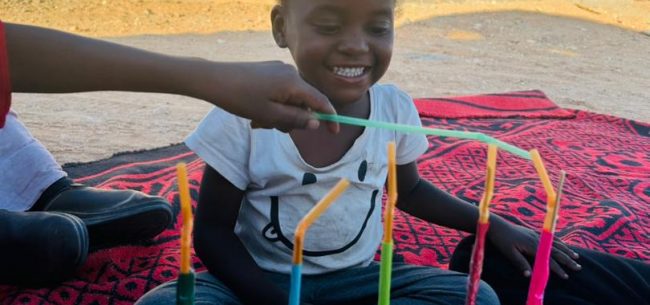 No sabemos cómo se juega en ese juego de colores. Quizá consiste en ir llenando cada pajita con el aro de cartulina que, según el color, le...