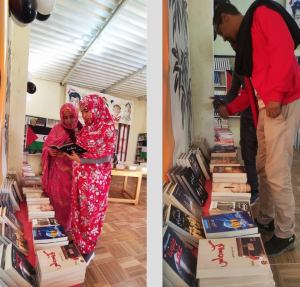 La biblioteca de Smara fue la sede elegida por las bibliotecarias y bibliotecarios saharauis para la presentación ante la sociedad de la nueva colección de libros en árabe. Los días previos a este acto Madja, Mina, Hamdi y Ebnu trabajaron con entusiasmo para que la biblioteca luciera espléndida y los libros estuvieran al alcance de todos. Hicieron carteles de invitación, avisaron a la televisión y a la radio, llamaron a los representantes dela cultura… Y llegó el gran día. Todas las bibliotecarias y bibliotecarios del Bubisher se emplearon a fondo para explicar el proyecto a la gran afluencia de gente que, a lo largo del día, les visitó