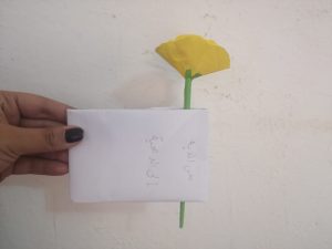 Y para ella, los niños y niñas de Bojador hicieron flores y las llevaron a su casa con un mensaje escrito por ellos en el que agradecen su cariño y su entrega, su valentía, su papel relevante en la sociedad.