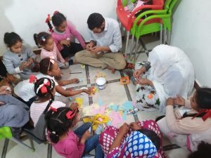 Estuvimos bailando y cantando nuestro himno sobre la igualdad, tradujimos al Hassania el estribillo para que todos los niños lo comprendieran y pasamos el tiempo dibujando y haciendo una manualidad en la que todos estuvieron encantados de participar.