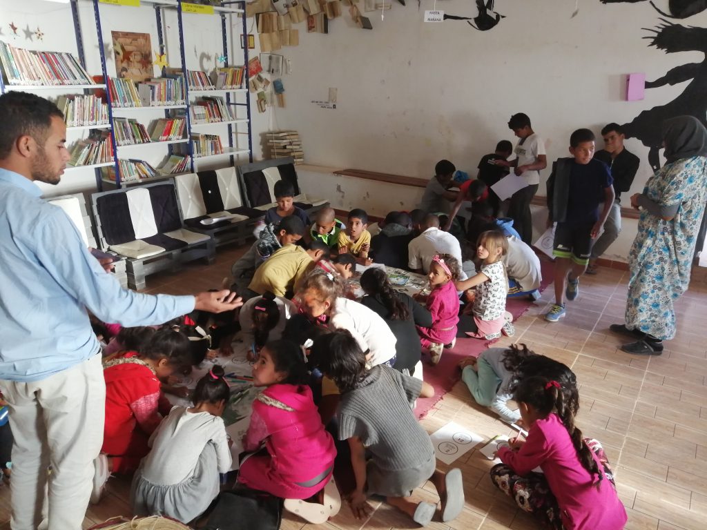 Por segundo año consecutivo, Ruth Franco ha pasado dos días cooperando con Alghailani en la biblioteca de Bojador. En esta ocasión, su trabajo ha consistido en presentar el proyecto “Depende de los dos”, diseñado por los centros CRA Alto Gállego y CEIP Puente Sardas, ambos en la provincia de Huesca, y cuyo objetivo es trabajar la coeducación en el aula.