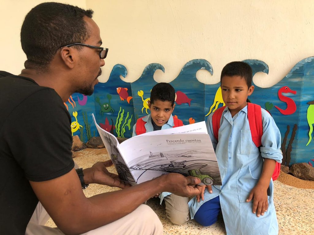 Finalizada la inauguración oficial, se hizo otra inauguración muy entrañable: La primera lectura de un libro para los niños de la wilaya de Dajla.