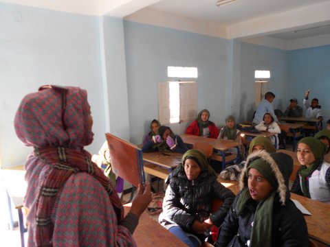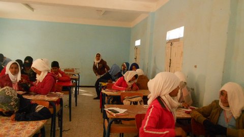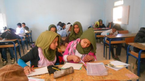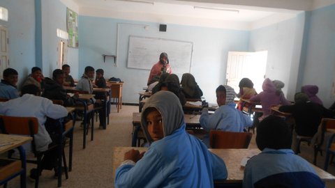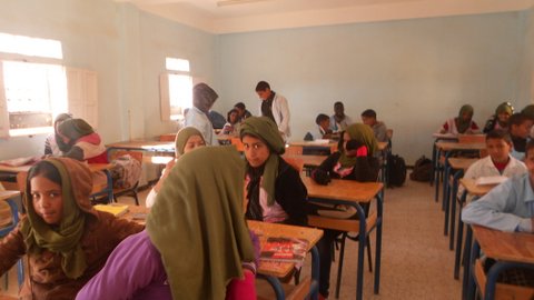 Os escribimos desde la escuela de secundaria Simón Bolívar que está a las afueras del campamento de Smara. En esta escuela estudiamos niños y niñas de todas las wilayas y de todas las dairas. Algunos vivimos internos en la escuela durante la semana, otros venimos por la mañana y volvemos por la tarde a nuestras casas.