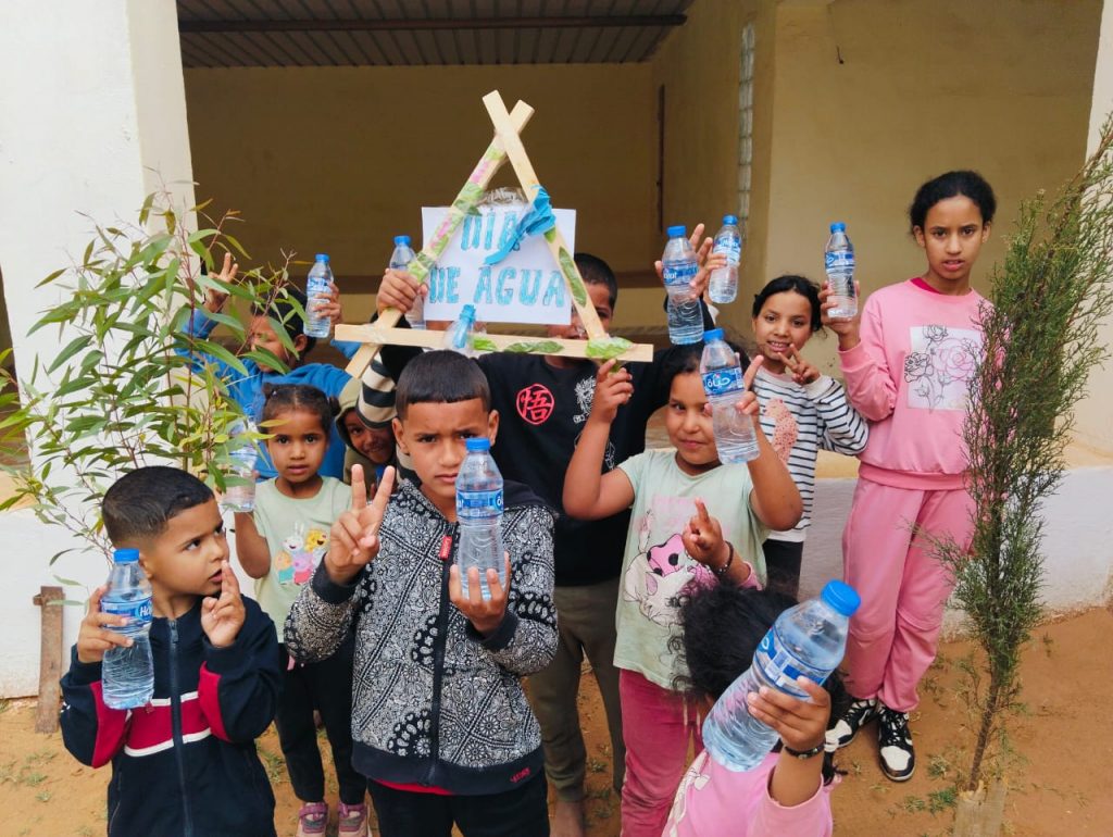 Hoy estamos con los niños y niñas de la Biblioteca Bubisher de la Aaiún celebrando el Día Mundial del Agua, que se conmemora el 22 de marzo. Sin embargo, adelantamos la celebración porque coincide con nuestra festividad de Eid (final del mes de Ramadán). Les hemos explicado la importancia del agua, lo necesaria que es para beber, cocinar, lavar, para la higiene, para los animales y para las plantas. Y hemos hablado de cómo conservarla, de no desperdiciarla, de sentir que es un bien común. Y han comprendido que el agua es la base de la vida, una bien indispensable.