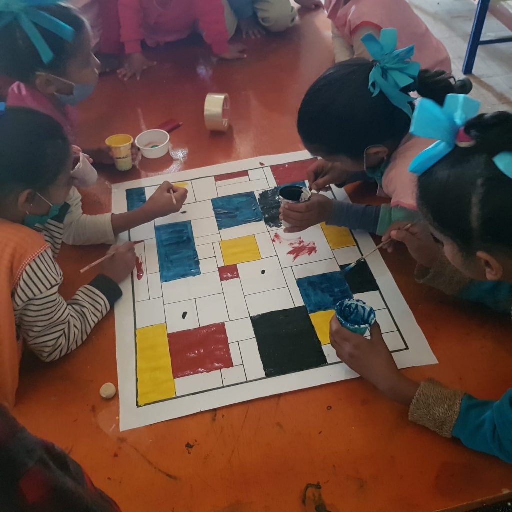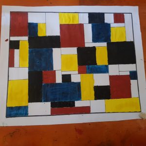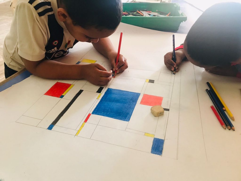 Piet Mondrian nos ha permitido entrar en el mundo de la geometría a través de su obra “Composición con rojo, amarillo y azul”. A los niños les costó entender que ese cuadro es una verdadera obra de arte, pero disfrutaron de lo lindo imitándolo y aprendieron con mucha facilidad la diferencia entre líneas rectas horizontales, verticales, paralelas, y perpendiculares. Aprender conceptos matemáticos a través del arte nos parece una forma sencilla y divertida de acercar a los niños a una asignatura que casi siempre se les atraganta.