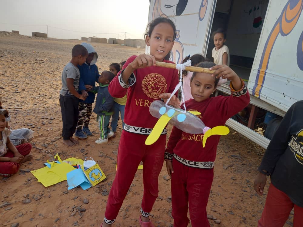 Aquí tienes a varios niños de una nación somera. La lámina de agua ha ido desapareciendo y se ha hecho intangible. Pero es navegable con la imaginación y con artefactos como el que han construido. Forman estos niños saharauis parte de una nación virtual de desplazados y refugiados que alcanzaría en el mundo (de reunirse todas las distintas procedencias) la cifra de más de 120 millones de personas.