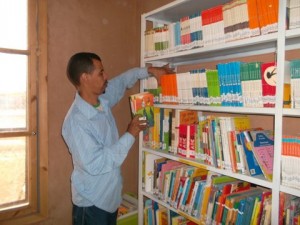 Se llama Ahmed Mahmud y durante  cuatro meses ha trabajado como voluntario con constancia y dedicación, ha aprendido a manejar con soltura el programa de gestión bibliotecaria, a ordenar el fondo en las estanterías, y lo que es más importante, a tratar con extremada delicadeza y amabilidad a todos los usuarios que cada día van a la biblioteca, ya sean niños, jóvenes o adultos.