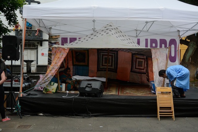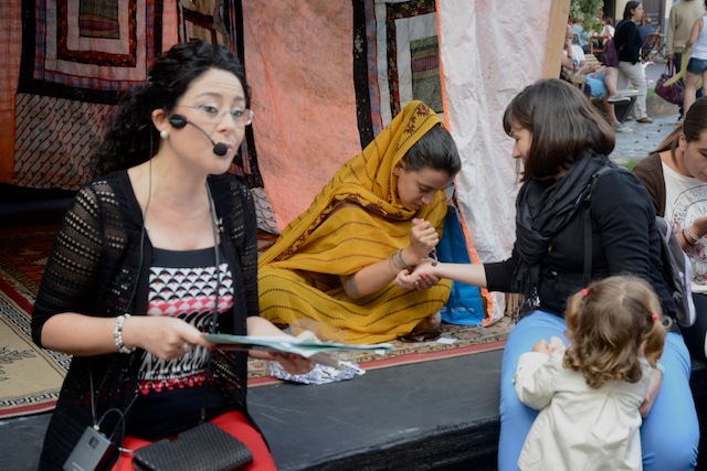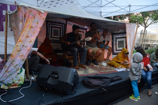 En la Feria de La Laguna hicimos además, la tarde del sábado, otra actividad. Montamos una jaimaen el escenario. Ofrecimos té, tatuajes de henna, explicamos el proyecto y todo ello con el fondo sublime de los sonidos de Mariem Hassan.