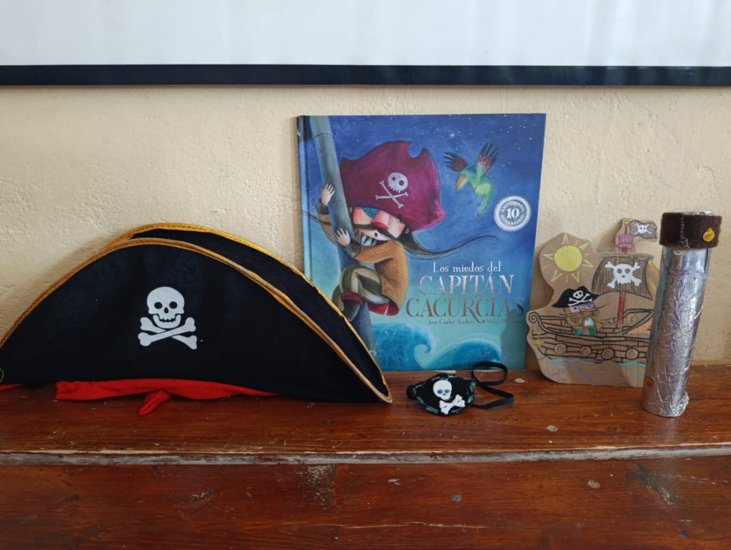 Nosotras también, junto con el capitán Cacurcias, acompañadas de la tripulación Bubisher, la mejor de todas las tripulaciones, nos enfrentamos a nuestros miedos, y con nuestra arenga pirata, los despedimos y los echamos a nuestra caja atrapamiedos ( los perros, la oscuridad, la muerte, los vampiros, las tormentas). Porque juntos, todo lo podemos superar.