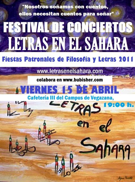 Comenzará a las 19:00 h, en la Cafeterí­a III del Campus de Vegazana, León. La recaudación recogida será para financiar el Proyecto Bubisher. Os esperamos a tod@s los leones@s para apoyar el derecho a la lectura en los campamentos de refugiados saharauis de Tindouf.