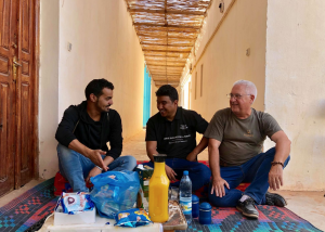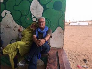 Y es más, mucho más. Tiene mucho amor en una jaima de Bojador, pero tiene también sus manos grabadas en los adobes de la Escuela de Cine, que podemos sospechar que no existiría si no fuera por su persistencia, su insistencia. Cuando te emociones viendo una película rodada en el Sáhara, por saharauis o por “nasara”, dedícale un latido de tu corazón a Carlos. Y si viajas allí, cuando puedas, habrá un poco del vuelo azul de su turbante, de su sonrisa plácida, de se seguridad en que “veremos el día”. Del amanecer. Y también sus manos están en ese árbol de tantas ramas que se llama Bubisher, y en quién sabe cuántos proyectos. Y en las asociaciones de su Navarra. Va a cumplir 70 muy pronto y desde aquí nos queremos adelantar: sigue, sigue, no pares. Nunca.