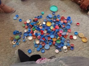 Aunque el espacio que veis tan sucio no es propiamente de nuestra biblioteca, no nos gusta verlo con tanta basura, así que, aprovechando que estamos trabajando el cuidado del Planeta, hemos pensado que empezar por nuestro entorno es el primer paso. Y nos hemos puesto manos a la obra animados y acompañados por nuestras bibliotecarias. No es una tarea fácil, porque al poco vuelve a aparecer basura, bien porque el viento la trae, bien porque alguien la tira. Pero no nos desanimamos. Intentamos que este espacio se transforme en un lugar seguro para jugar y que esté limpio, para que la biblioteca se vea bien bonita por dentro y por fuera. Además, separamos tapones, los limpiamos bien y los guardamos para hacer alguna obra de arte, como nos enseñó Mohamed Sulaiman.