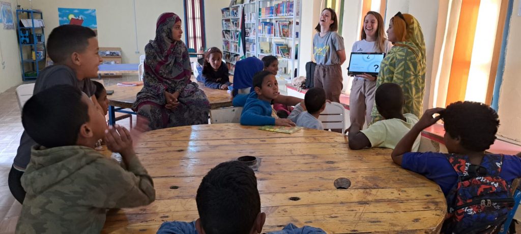 Al final, fueron cómplices. Cargaron cajas de libros, nos recordaban lo que olvidábamos, nos deseaban buenos viajes y se pasaron varias veces por la Biblioteca para hablar a los niños de sus cosas, cosas de cabras que también son cosas de humanos. Hicieron reír, captaron su atención, jugaron con ellos, y acabaron seducidas por esa corriente de empatía y solidaridad que solo se produce en compañía de historias, juegos y libros. Acabaron convirtiéndose en unas de las nuestras.