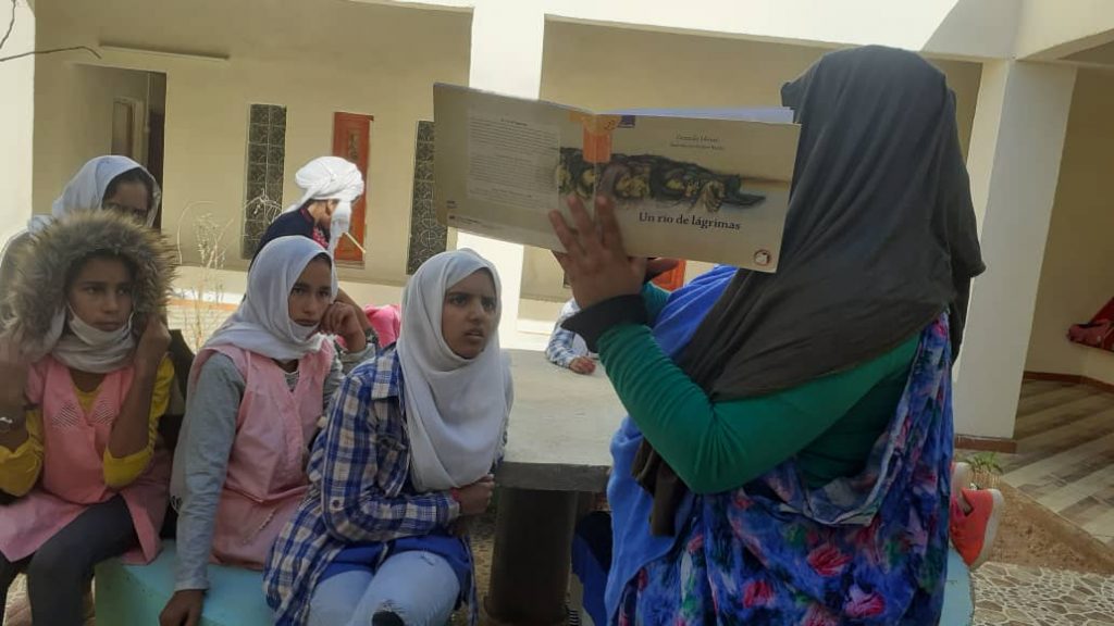 Por su parte, Faluka, en Dajla, leía esta mañana el cuento “Soy una persona educada” y les explicaba a los niños los principios de respeto y educación que rigen en una buena convivencia.