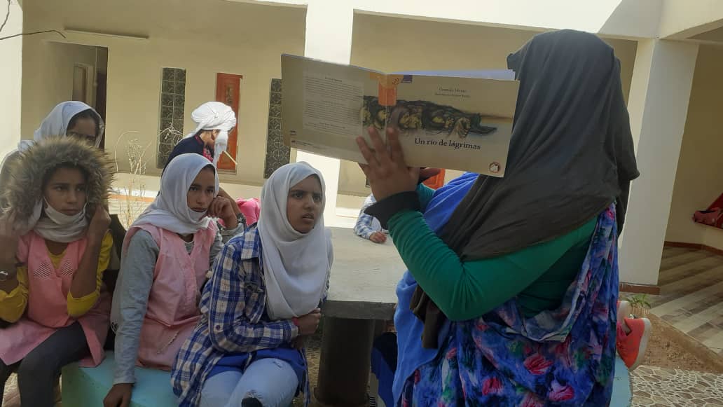 Por su parte, Faluka, en Dajla, leía esta mañana el cuento “Soy una persona educada” y les explicaba a los niños los principios de respeto y educación que rigen en una buena convivencia.
