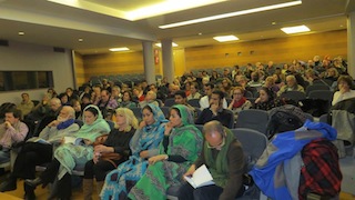 Fernando Llorente quiso ahondar en ese análisis, y tras varios intentos a lo largo de la vida, logró por fin viajar hasta lo más profundo y verdadero del desierto, el Tiris, e incluso hasta su santuario, Leyuad. Una “obra de Dios”, no del hombre, aunque fueron también los poetas los que expulsaron de su seno a los genios maléficos, llenando su espacio de versos y oración. Esa es la clave, la espiritualidad. Por eso el libro que ayer se presentaba era “Tiris, espiritualidad saharaui. Conversación en Miyik”. Una fusión entre viaje y sueño: el de haber reunido en una quimérica jaima a poetas de la vieja guardia como Badi Mohamed Salem y Bunana, con poetas de la Generación de la Amistad, que a diferencia de los primeros, escriben su poesía en castellano. Y de pronto, en el escenario del Ateneo, en la voz sin fronteras de Raquel Martín, sonaban con la misma belleza los poemas de Limam o Zahra Hasnaui, que los libremente versionados por Fernando de Badi Mohamed Salem.