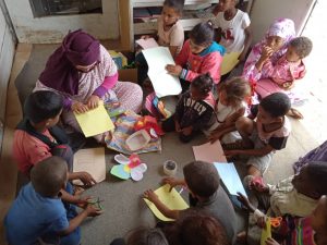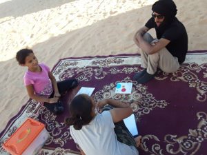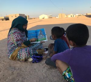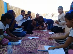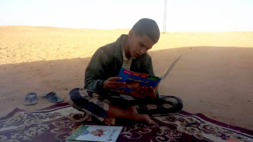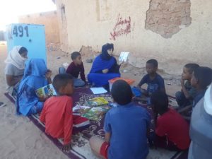 La biblioteca no es un espacio, es un concepto que se materializa allí donde un libro se abre. Los niños y niñas de los campamentos lo saben muy bien. Cada tarde la biblioteca vuela hasta sus dairas cargada de historias fascinantes. Y dentro de un camión convertido en bibliobús o sobre la arena; sentados sobre una alfombra o tirados a la larga escuchan, escriben, dibujan, imaginan, juegan, se ríen. Y cuando el sol cae, regresan a sus casas con la alegría de haber pasado una tarde mágica, con la ilusión de que, muy pronto, ese pájaro-camión-biblioteca regrese a su daira.