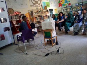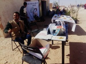 Estos días, cientos de corredores de todo el mundo se han dado cita para correr por la hamada una de las maratones internacionales más duras, dadas las características del suelo y del clima. Junto a ellos han estado los bibliotecarios del Bubisher. Y es que participar en este tipo de eventos es , ante todo, apoyar la causa saharaui y poner de manifiesto que las bibliotecas son espacios de encuentro en los que, además de leer y prestar libros, se celebran todo tipo de actividades culturales y de formación. Sin ir más lejos, esta semana se ha impartido en la biblioteca de Smara un curso para guías turísticos que acompañarán a las delegaciones que participarán en el 27 de Febrero y en Sahara Marathon; en Dahla se hizo un programa de radio; en Auserd fue interesantísima la ponencia de “El loco del desierto” y en Bojador los niños hicieron un taller relacionado con el miedo y las formas de vencerlo.