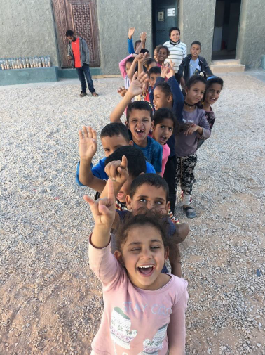 Durante nuestra estancia en los campamentos íbamos a la Bubisher cuatro días por semana, en los cuales seguíamos una rutina parecida. Al inicio de la actividad leíamos el cuento en español (elegido por nosotros mismos unos días antes) y los trabajadores de la Bubisher lo traducían al hassania, lo cual nos pareció un proyecto muy interesante, ya que de esta manera se introducía el español a los niños de una forma divertida e informal. Seguidamente hacíamos una actividad relacionada con el cuento, la cual normalmente era una manualidad (pintar, dibujar, escribir, construir juegos para jugar más adelante…). Finalmente, con el tiempo que nos quedaba (normalmente unos 45 minutos) hacíamos actividades en el patio, como juegos o canciones y bailes dirigidos. Nos dimos cuenta de que los niños disfrutaban mucho de las canciones y bailes, las cuales eran en español e inglés, ya que les permitía adquirir momentos de protagonismo ya fuera dirigiéndolos o bailando delante de los demás.