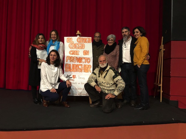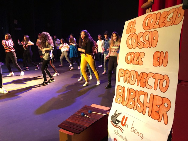 Y lo más importante para nosotros: el escenario estaba presidido por un cartel del Bubisher, y el poema de Limam, “Un beso, solamente un beso…” Y es que la recaudación íntegra del espectáculo fue para el Bubisher, para ayudar a la construcción de la biblioteca de Dajla. Además, se vendieron muchos ejemplares de “El niño de luz de plata”. Presentaron el acto la propia Joanna, la profesora Marisol, Gonzalo y Limam, aunque había en la primera fila más representantes del Bubisher. Es así,esfuerzo tras esfuerzo, como se mantiene un proyecto, pero sobre todo como se enseña a los alumnos la fuerza que ellos mismos atesoran. Los del Cossío aprendieron que, cantando y disfrutando, tocando los tambores, se pueden cambiar las cosas. Muy pronto estará lista la biblioteca de Dajla, y en sus muros habrá música, desde tan lejos, pero tan de cerca.
