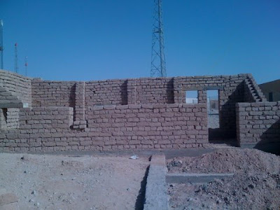 No se puede empezar mejor un año. Construyendo. Hoy sábado, lunes para los saharauis, era dí­a de trabajo. Y a las seis de la tarde, este era el aspecto del «beit» (la habitación para los voluntarios), y de la biblioteca. Si pudiéramos hacer un salto adelante, cuantos buenos ratos verí­amos en el beit, cuántas tardes de silenciosa o ruidosa lectura vivirí­amos en la biblioteca…