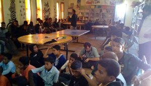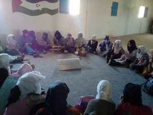 La Biblioteca Bubisher de Smara, como una de las instituciones de la wilaya y en colaboración con los organizadores Mundubat, AFAPREDESA Y Ministerio de Educación Saharaui, se encargó del taller relacionado con el muro de la vergüenza y sus efectos y consecuencias.
