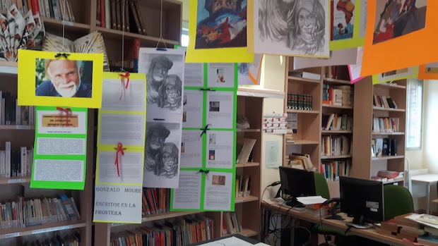 Durante las tres jornadas, alumnos de diferentes grupos de 1°, 2° y 3° de ESO acudieron a la biblioteca para conocer, a través de la explicaciones de Maria Eugenia y de Alicia, la labor literaria y humanitaria del escritor Gonzalo Moure.