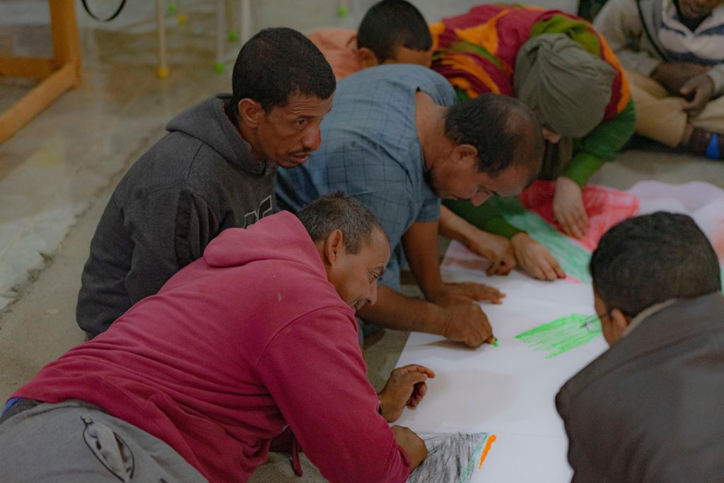 Su discapacidad no les impide disfrutar de todo cuanto hacen. Ríen, colaboran, se divierten y transmiten un afecto sincero. Cada lunes y cada miércoles acuden a la biblioteca Bubisher de la wilaya de Dajla y, en colaboración con la escuela de personas con discapacidad, les ayudamos a comprender cuentos sencillos y a participar en actividades que pueden realizar.