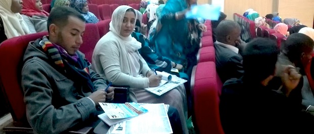 Por la tarde, se presentó el proyecto Bubisher como único proyecto de bibliotecas en los Campamentos de Refugiados Saharauis. Alghailani explicó de forma muy detallada cómo nació el proyecto, cuáles son sus objetivos, cómo está organizado, qué se ha conseguido y cuáles son las dificultades. El interés de los presentes fue muy grande e hicieron muchas preguntas, las cuales fueron contestadas con precisión por nuestro portavoz.