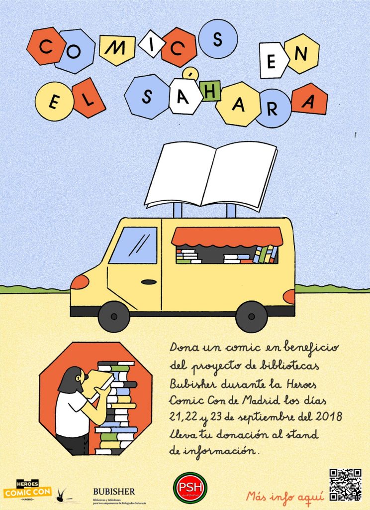 Heroes Comic Con Madrid brinda la oportunidad de colaborar de nuevo con Bubisher; introduciendo el formato cómic a estas bibliotecas, que en este momento resulta bastante escaso. Así, nos gustaría hacerles llegar novelas gráficas y tebeos, comics de cualquier estilo y aptos para todas las edades. Desde clásicos de la infancia como Los Pitufos, Mortadelo y Filemón, Spirou, Asterix y Obelix y Tintín, hasta grandes obras maestras del género como V de Vendetta, Watchmen, El largo Halloween, Año uno, Guantelete del Infinito, El Incal o Maus.