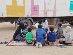 Me llamo Hamada Barka. Aunque ya había trabajado en la biblioteca Bubisher de Dajla haciendo una sustitución, cuando me propusieron hacerme cargo de llevar el proyecto a El Aaiún empezando con un nuevo bibliobús en las dairas y en las escuelas de este campamento, sentí una mezcla de entusiasmo y miedo. Por una parte me encantó la idea de seguir siendo un miembro más de la familia Bubisher, por otra, me preocupaba cómo sería recibido por los profesores, los niños y niñas y la población joven y adulta de El Aaiún. Muy pronto mis temores se convirtieron en alegría al comprobar que muchos ya conocían el proyecto, que estaban esperando con ilusión que llegara a su campamento y que trabajar por las mañanas en las escuelas y por las tardes en las dairas me hacía sentir que estaba colaborando con la expansión de la cultura entre mi gente.