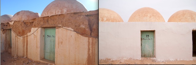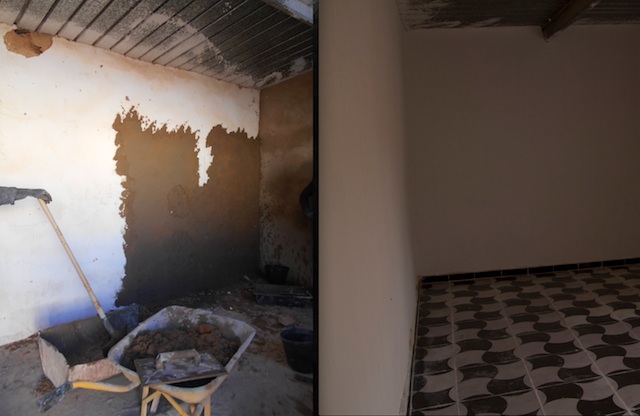 El edificio es el de la escuela Valencia, en la wilaya de Smara y, como podéis observar, el trabajo de Skeirit y Hassanna ha sido magnífico. Ahora hay un aula en buenas condiciones en la que la dirección del colegio sabrá ubicar algún servicio común que revierta en todos los alumnos. Y se han reforzado las paredes exteriores lo que impedirá un deterioro mayor del edificio.