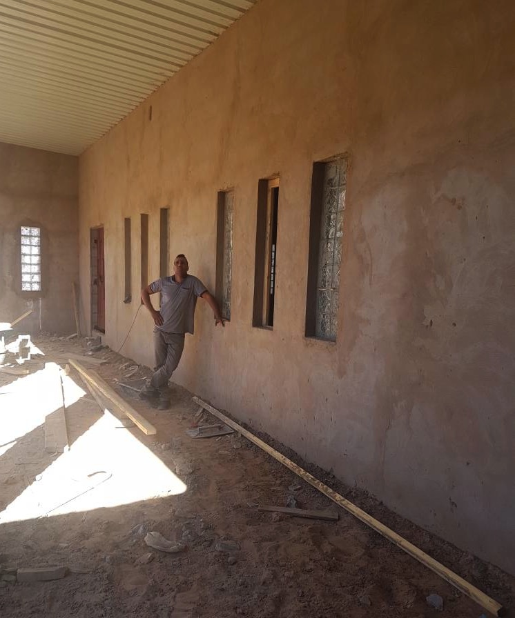 son espectaculares. Ya el exterior está prácticamente terminado y ahora es el interior el que se va perfilando día a día. Skeirit demuestra, una vez más, su talento y su profesionalidad y su interés incuestionable en que la biblioteca de Dajla sea funcional y hermosa. Y también, una vez más, agradecerle al arquitecto Rogelio Martín el magnífico diseño de esta obra y a Inés y a Hassanna el minucioso seguimiento que están haciendo de la misma, sin olvidar a todos los que estáis haciendo posible que Dajla, por fin, tenga una biblioteca más que digna.