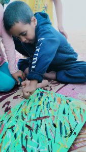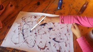 El arte surge de la observación, de la búsqueda, de la interpretación de la realidad, del deseo de crear. Así lo entendía Pollock, que no sabía dibujar, pero sí sabía que tenía mucho que decir en el mundo de la pintura. Y sorprendidos al ver su cuadro titulado Nº 5 que, dicho sea de paso, se vendió por 140 millones de dólares, los niños y niñas saharauis sintieron el impulso de crear sus propios cuadros de expresionismo abstracto. El resultado salta a la vista, magnífico, pero lo más importante es que disfrutaron muchísimo con esta lección de arte contemporáneo que no van a olvidar.