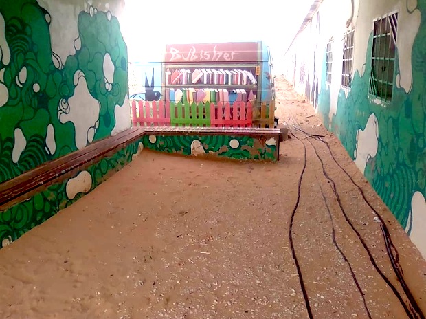 En la biblioteca de Bojador, Alghailani y Hamada llevan trabajando desde el día 1 de septiembre en lo que ya es una preciosa realidad. La valla de colores, construida y pintada por ellos, ensalza el ya de por sí llamativo edificio de la biblioteca. Y poco a poco, se irá viendo aún más bonito, porque aumentaremos el número de árboles y su crecimiento será un motivo más de orgullo.