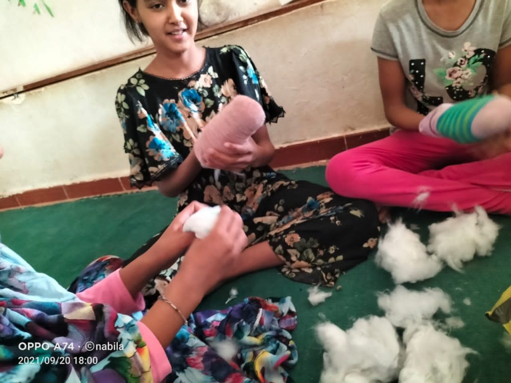 Mi emoción al ver a Alghailani y a sus lectores, y las muñecas de trapo elaboradas con materiales sencillos (hilo de sobras, calcetines y botones viejos) es indescriptible. Lloro literalmente de alegría al verlas. No solo por el poder de la literatura, capaz de derribar fronteras y de anular las distancias. Me imagino allí, al lado de los bibliotecarios y de los niños, leyéndolos, oyéndolos, cosiendo, jugando en cuclillas con ellos. También siento la satisfacción de haber contribuido, con cientos de personas en España, en la construcción de estas bibliotecas que nos hacen a todos iguales como lectores. Tanto vale una biblioteca allí como otra aquí. Tanto vale un lector aquí como otro allí.