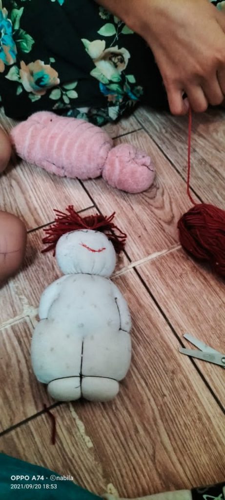 La fuerza de la gravedad disminuye con la distancia. La emoción, no. Desde muy lejos recibo unas fotos en las que Alghailani lee con un grupo de niñas y de niños El sueño de Lu Shzu, en las bibliotecas del Bubisher. Este libro mío (también de Tesa González, la ilustradora) hace una reivindicación de la muñeca de trapo, cosida por una abuela, frente a los juguetes industriales que tienen lucecitas y sonidos, y quedan al poco olvidados en un rincón.