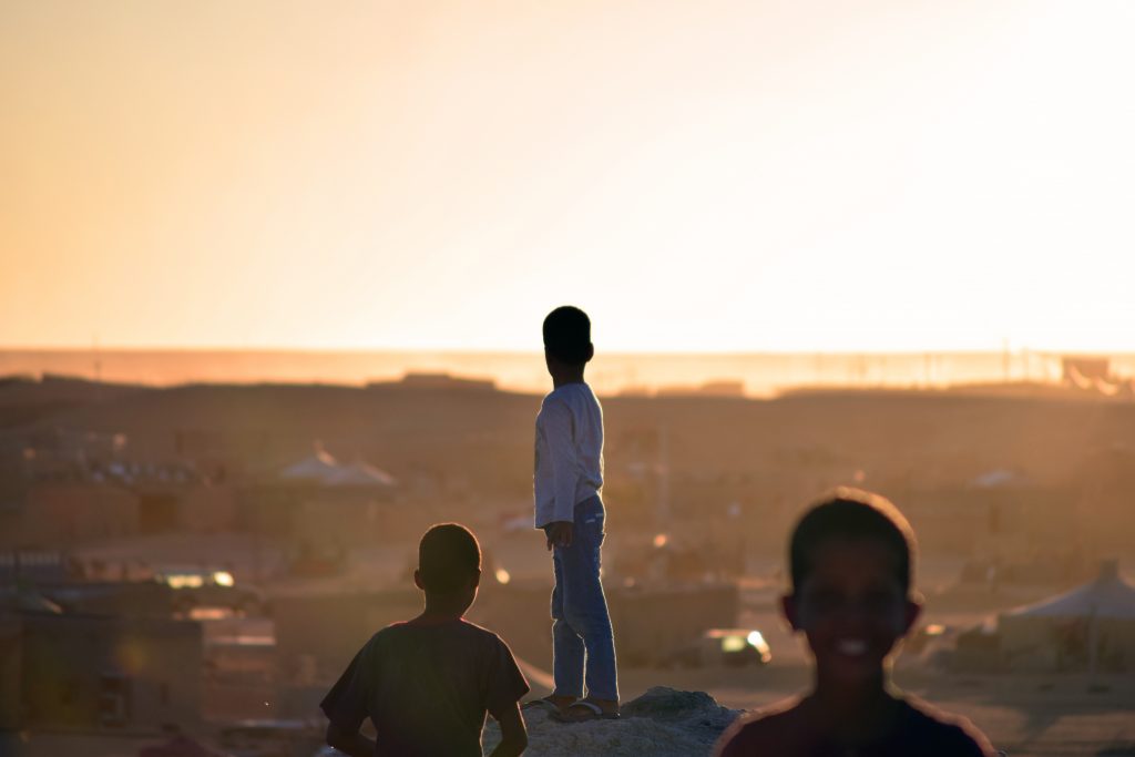 La mayoría de los niños saharauis pasan muchas horas a la intemperie y sus cuerpos sin apenas protección, también se vuelven duros en sintonía con la hamada. Duros y al mismo tiempo son espíritus imaginativos y alegres.