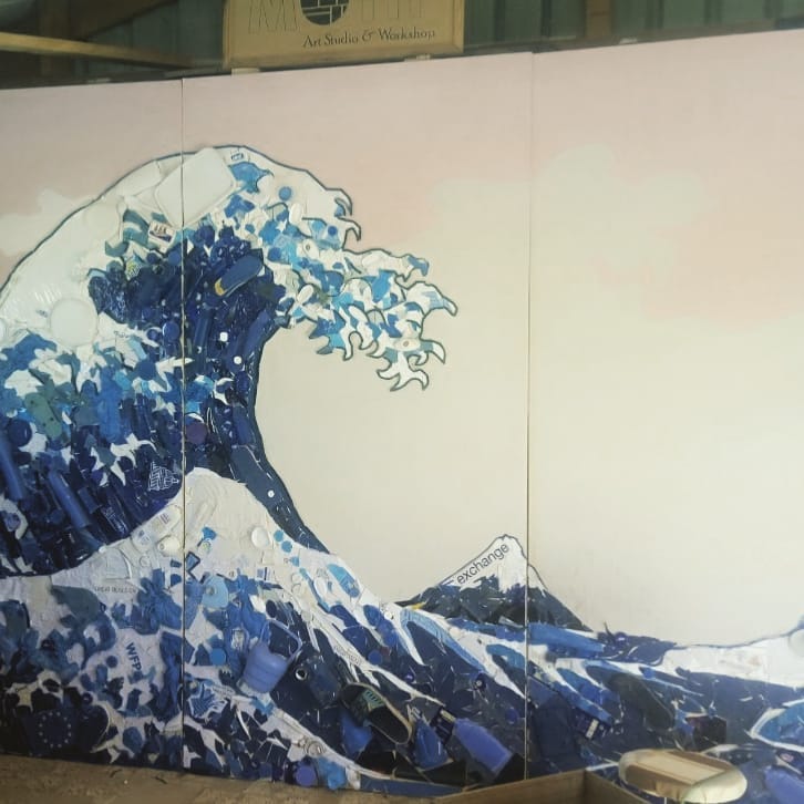 Un ejemplo fantástico es la obra de Mohamed Sulaiman “The Great Wave of Plastics”, basada en “The Great Wave off Kanagawa’ del artista japonés Katsushika Hokusai. Impactante la forma en la que Sulaiman ha recreado esta famosa estampa japonesa utilizando todo tipo de materiales de desecho.