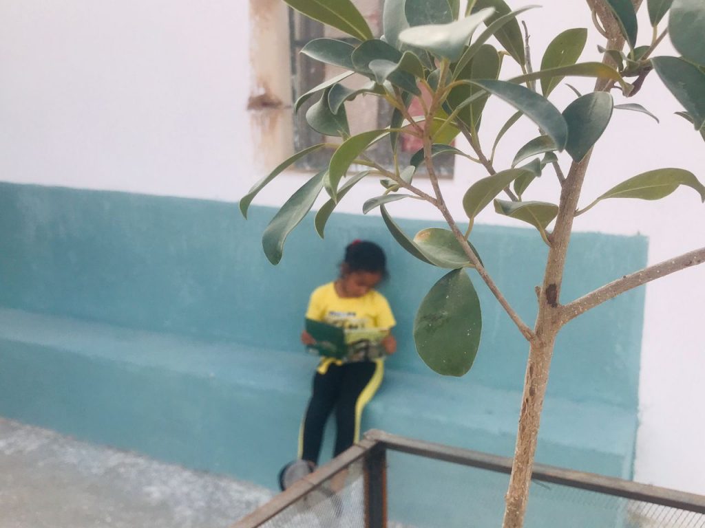 A veces una fotografía como cualquiera de estas de Medje, la bibliotecaria de Smara, ya lo dice todo. Desencadena en tu mente, por ejemplo, un río tierno e imparable que te lleva de las palabras a las flores. En los campamentos las taljas y las moringas tiene que estar protegidas por pequeñas vallas de las cabras que quieren variar su dieta de papel y cartón con algo mucho más jugoso. Como las niñas, que detrás de las flores y el verde, necesitan la protección y el cariño de una biblioteca y sus bibliotecarias. No son palabras prisioneras las que leen con tanta atención, son palabras libres y voladoras, como tampoco son flores prisioneras detrás de la valla, sino flores y árboles a las que pueden venir, estas sí, las mariposas y los pájaros. Y si encima, como estos días, la lluvia tranquila visita los campamentos, la fiesta es completa. Una fiesta de palabras, flores y niños.