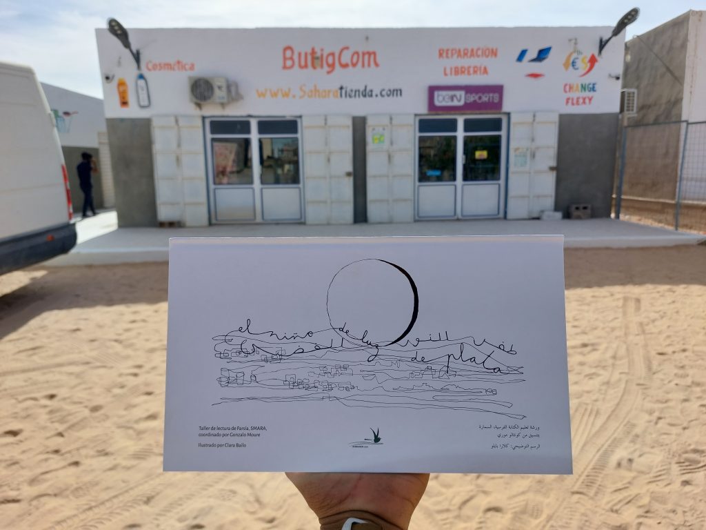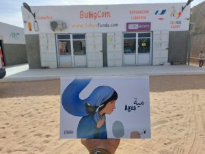 Por ejemplo, regalar desde aquí a un niño saharaui, uno de los libros del Bubisher: Memorias de nuestro viaje, Arena y Agua, El niño de luz de plata o Ritos de Jaima. No hay más que entrar en la página saharatienda.com, buscar abajo en “Productos Destacados”, y los verás. Los tres primeros, en español y árabe. Por solo 10 euros cada uno, entregado al día siguiente, mediante una sencilla transferencia. ¿Qué mejor regalo? Y si lo haces, recuérdale que en la biblioteca Bubisher de su campamento tiene todos los libros que quiera, gratis, y con mil actividades.