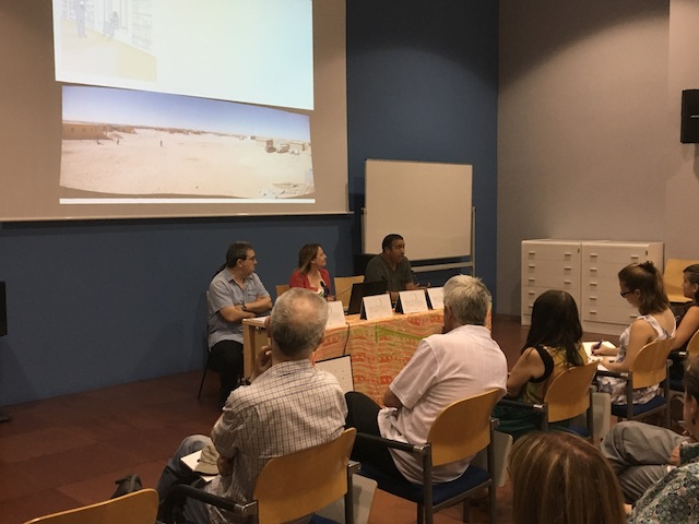 Sidahmed Darbal dedicó unas palabras de agradecimiento al proyecto Bubisher por estar presente desde hace casi diez años en los campamentos, como uno de los proyectos culturales más importantes. Paco habló de la situación del pueblo saharaui, desterrado desde los años setenta al desierto o viviendo bajo el dominio marroquí en los territorios ocupados. Carmen y Pilar hablaron de los inicios del proyecto y de la situación actual. Y Bea mantuvo con Clara una conversación cariñosa y amable sobre el libro que nos convocaba.