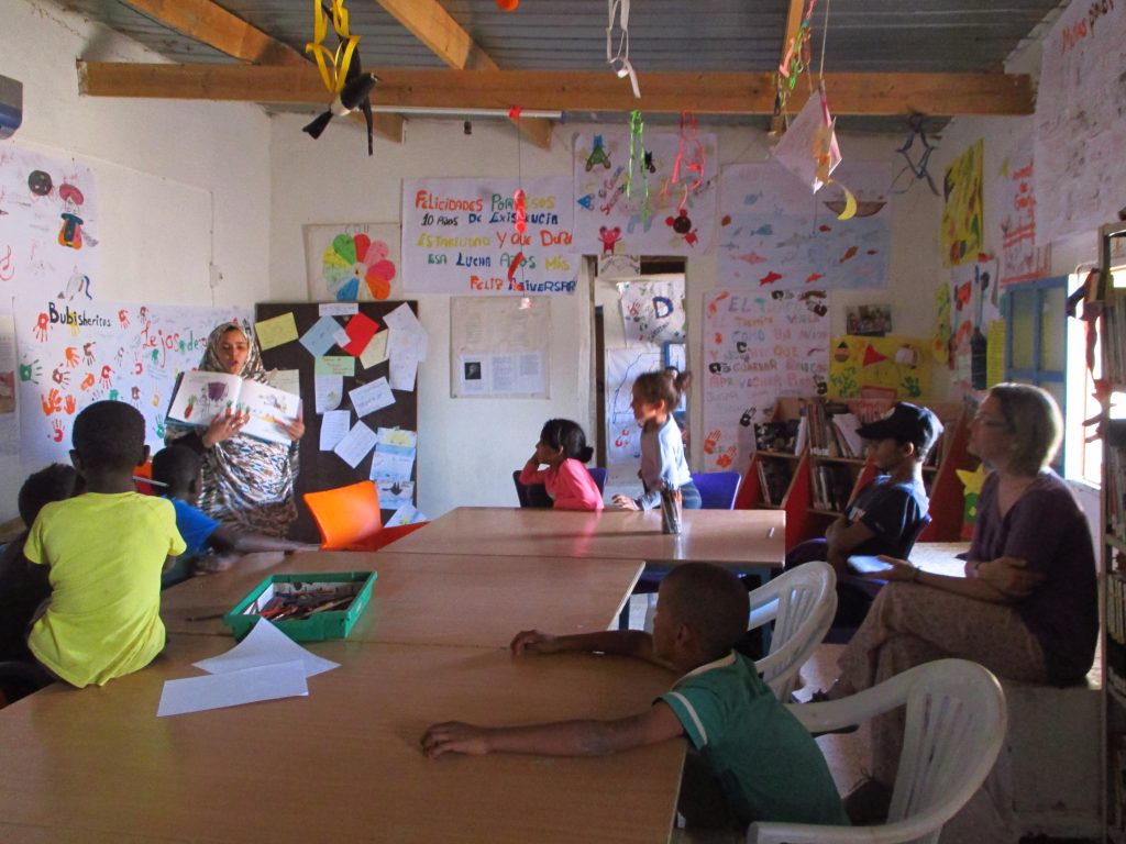 Ese es el papel que se les asigna a las veinte bibliotecarias y bibliotecarios que trabajan en el proyecto. Ir a las escuelas, sembrar en todos los escolares las viejas y las nuevas historias, e invitarles a acercarse a la biblioteca por la tarde (o ir a recogerles con el bibiobús si viven lejos), para trabajar en ellas en clubes de lectura y escritura, poesía, teatro, fotografía, cine. Cuando llueve en el desierto fértil (la badía), nace la hierba. Los campamentos son eso, semillas esperando el riego de la cultura para volver florecer.