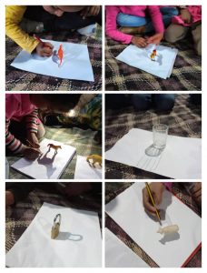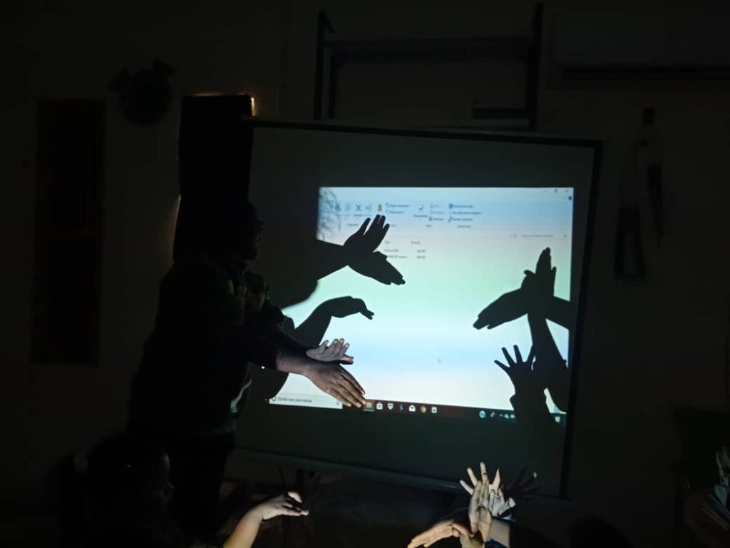 Nos gusta que nuestros niños y niñas aprendan experimentando, observando y actuando. Y como en nuestros jardines cada vez hay más sombras y como el sol está siempre presente en nuestras vidas y como tenemos paredes blancas, pantallas y papeles continuos, hemos aprovechado para explicarles brevemente cómo se producen las sombras. Y después… ellos mismos hicieron sombras chinescas, pintaron sombras, crearon sombras con su cuerpo… Aprendieron a alargarlas y a achicarlas. Y cuando terminamos, se fueron para sus casas buscando sombras y disfrutando de la luz.