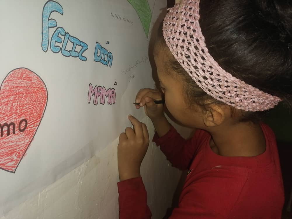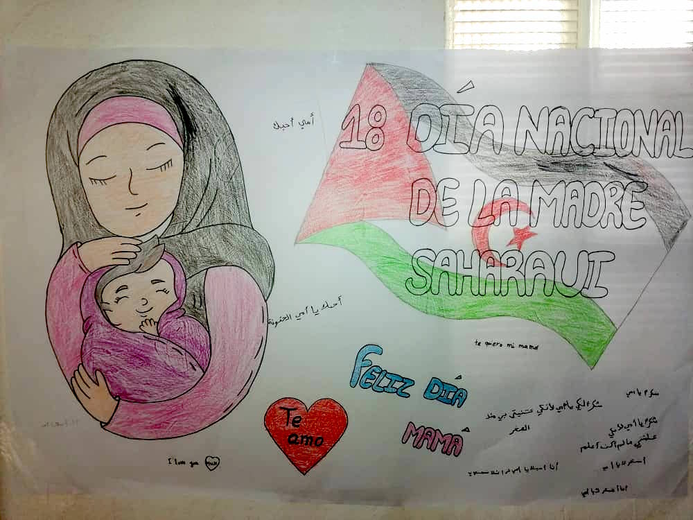 Hoy, en la biblioteca de Bojador quisimos rendir un homenaje a todas las madres con un mural en el que los niños y niñas escribieron todo cuanto sienten y desean a sus progenitoras. Y, al mismo tiempo, recordamos la lucha de la mujer saharaui tomando como ejemplo a Sultana.