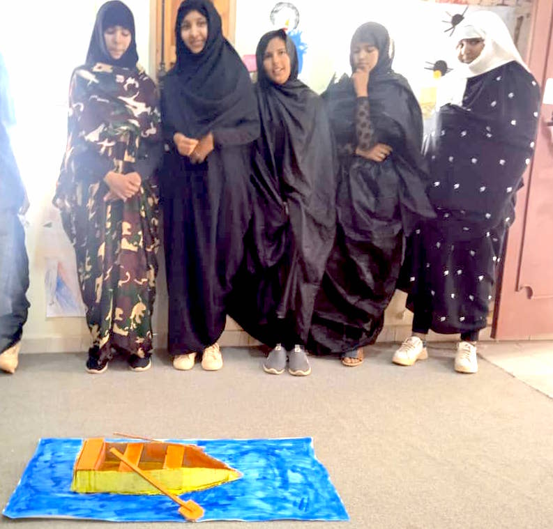 En la misma línea, en la biblioteca de Dajla quisimos llegar hasta nuestra tierra invadida en un barco de papel, con la esperanza de que algún día, muy pronto, sea un barco de verdad en el que nuestras madres y nuestras abuelas puedan navegar por el mar anclado en sus recuerdos.