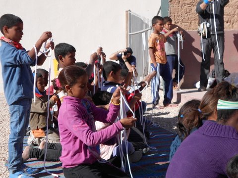 Elena, Beni, Juan Carlos y Armando llegaron al Nido cargados de cuerdas y de imaginación. Los niños, siempre dispuestos a aprender algo nuevo, trataron con todas sus fuerzas de aprender el truco de magia que les propuso Armando. Algunos lo consiguieron a la primera, a otros les costó un poco más, pero todos se divirtieron de lo lindo.