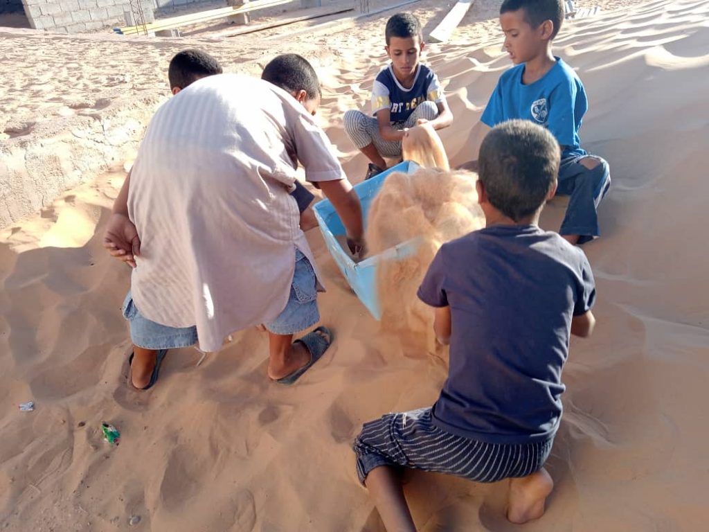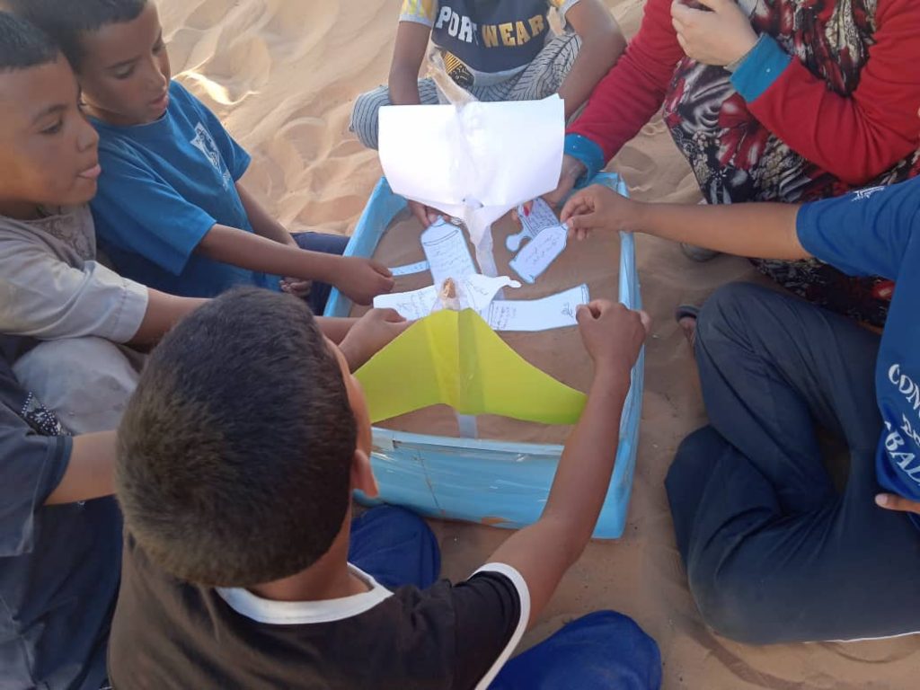 ¿Alguno de los que habéis visitado los campamentos se llevó una botella o un calcetín lleno de arena para regalar a la familia o a los amigos? Pues ayer en la daira de Leguera, en Auserd, con muchísimo calor ya, los niños escribieron mensajes llenos de añoranzas y recuerdos, que ya navegan sobre las olas de un imaginario mar desértico hacia sus familias de acogida