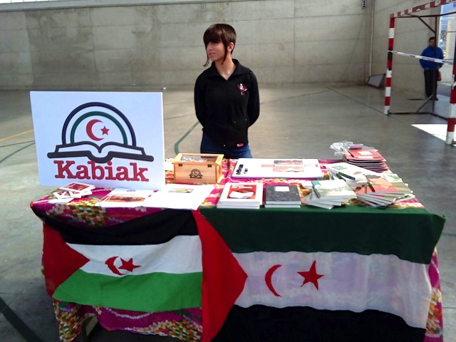 los niños y niñas de la ikastola Jaso de Iruña, Pamplona, organizaron una fiesta saharaui. Y ahi estuvimos con una mesa con libros, chapas y los recortables del bubisherito.
