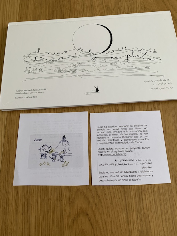 Por eso, he querido compartir un detallito hoy, que es el día de mi cumpleaños, con otros niños que tienen un acceso más limitado a la educación, así que, mi mamá ha enviado una carta a los padres de mis amigos, explicándoles que he decidido donar al Proyecto Bubisher el dinero que pongo para sus regalos de cumpleaños.
